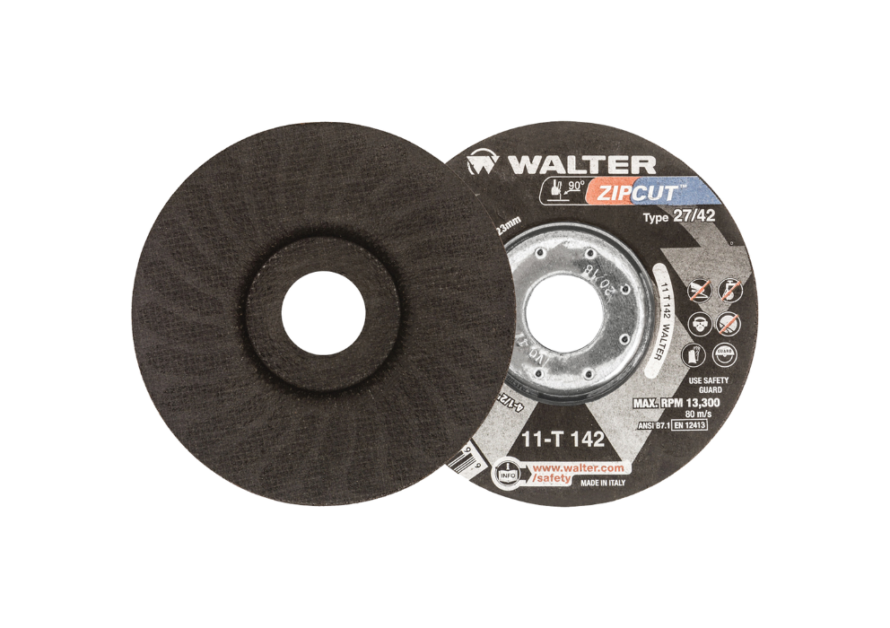 Proprietary aluminum oxide grain combination for aggressive cutting action. Proprietary Material Mix ensures durable long life wheels.